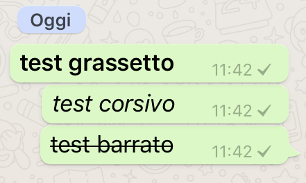 Da ieri infatti è possibile utilizzare il corsivo, il grassetto e il ̶b̶a̶r̶r̶a̶t̶o̶ nei testi dei vostri messaggi su WhatsApp.
